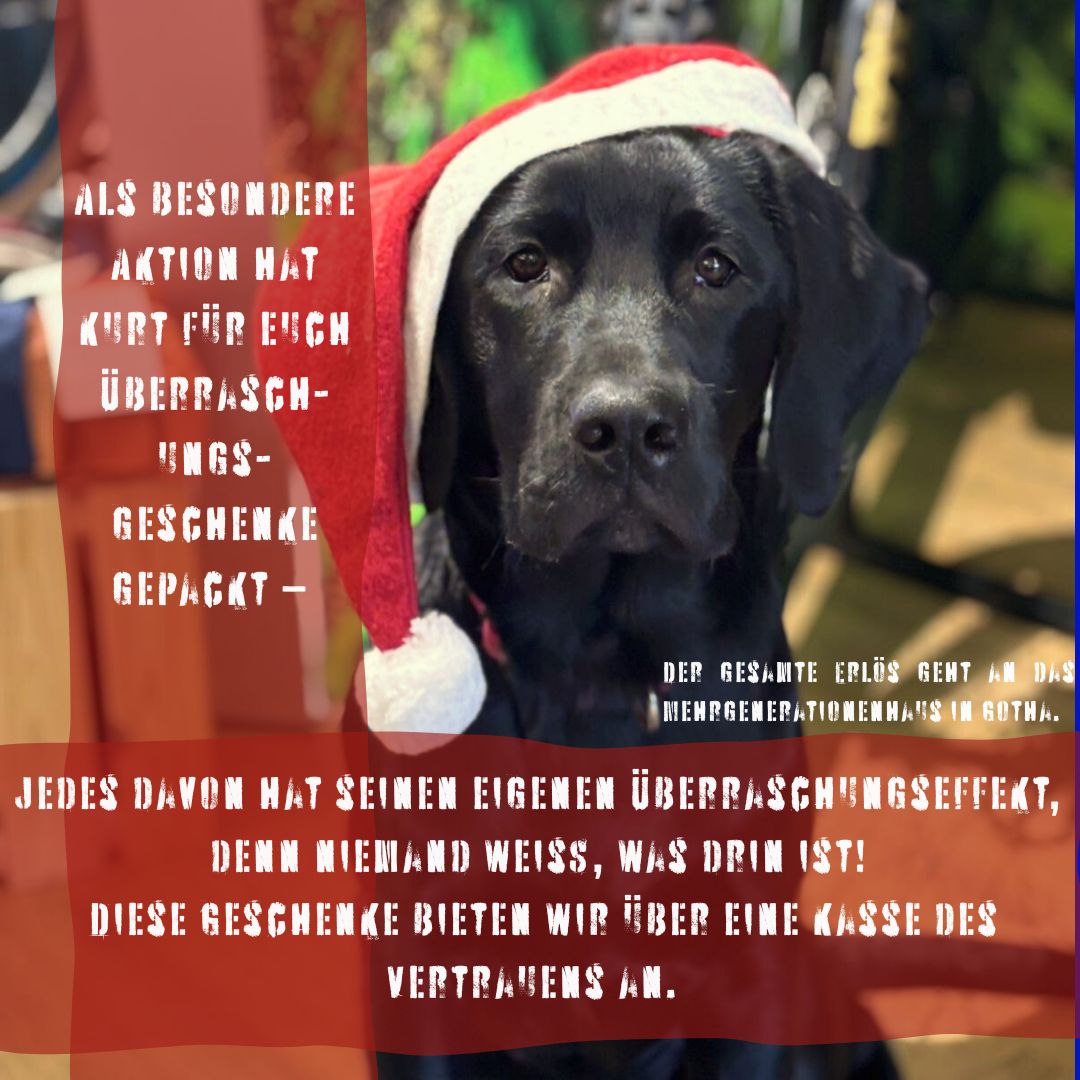 Als besondere Aktion haben wir für Dich und unsere anderen lieben Kundinnen und Kunden Überraschungsgeschenke gepackt – jedes davon hat seinen eigenen Überraschungseffekt, denn niemand weiß, was drin ist!Diese Geschenke bieten wir über eine Kasse des Vertrauens an. Der gesamte Erlös geht an das Mehrgenerationenhaus in Gotha.